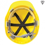 Pevná, ľahká a pohodlná bezpečnostná prilba s individuálne nastaviteľným 6-bodovým náhlavným krížom, s potným pásikom. Posuvné nastavovanie jednou rukou. Ekonomické riešenie bez kompromisov v ochrane, funkčnosti a komfortu. Elektricky izolovaná až do 440V. Spĺňa požiadavky noriem STN EN 397 a STN EN 50 365.
