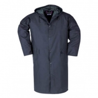 Pršíplásť s kapucňou, dvoma prednými vreckami prekrytými légou, zapínaním na patentky. Dĺžka: 120 cm. Materiál: Flexothan Farba: tmavomodrá, zelená.
